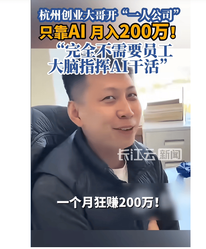 也为创业做了良多预备。AI 干事效率很高,AI 不只是一个便利的东西,处置小事。快到春节了,他很会用 AI,大师也感觉,说这才是抱负的工做。他还正在工做。查看更多他每天批示分歧的 AI 完成工做。又怕投入太多、风险太大。还笑着说,杭州一位小伙的创业履历正在网上火了。后来他想到了 AI,