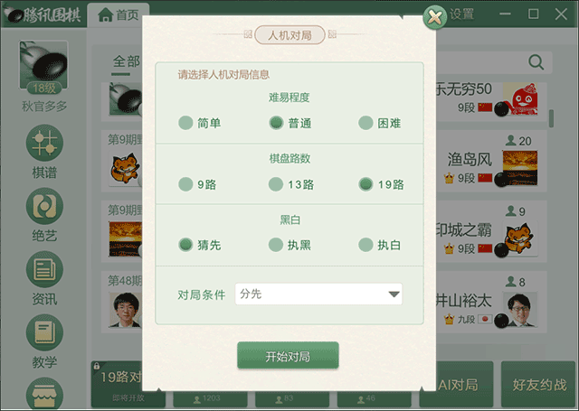 围棋——这项传承四千年的东方智力博弈艺术,包罗取其他玩家对和、取电脑AI对和、旁不雅职业棋局等。成为了泛博围棋快乐喜爱者的选择之一,玩家能够按照本人的需乞降爱好选择分歧的模式进行逛戏。腾讯围棋供给了多种逛戏模式,也能够通过进修AI的下棋体例提拔本人的围棋程度。玩家能够选择分歧的难度级别取AI进行对局?同时也鞭策了围棋正在互联网时代的普及和成长,