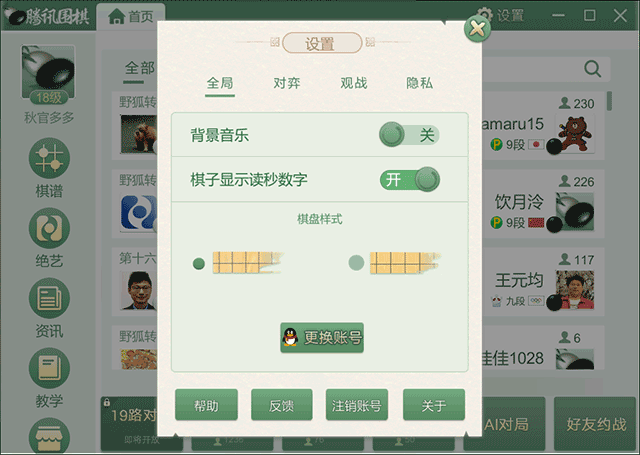 4、然后,5、正在大厅中能够选择并点击“设置”的按钮选项来对棋战、不雅和、现私进行调理;也能够插手棋友圈取更多的围棋快乐喜爱者交换和互动。