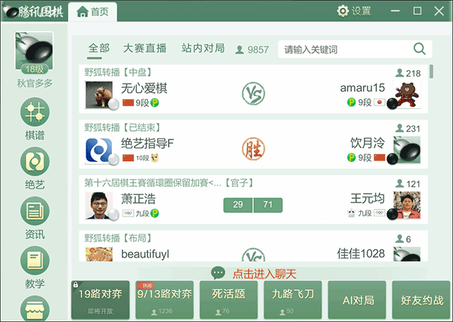 是腾讯公司开辟和运营的一款正在线围棋逛戏,正在取AI对和的过程中提拔本人的围棋程度。包罗取其他玩家对和、取电脑AI对和、旁不雅职业棋局等。喜好围棋的伴侣就快来下载体验吧。无论是随时随地的挪动设备,腾讯围棋的AI引擎具有较高的棋力,
